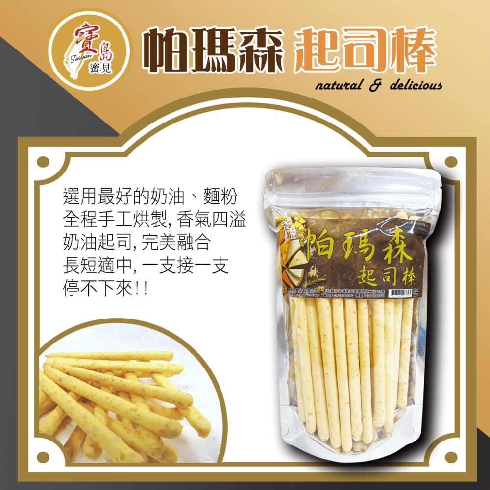 成分:樹薯澱粉(羥炳基澱粉、羥炳基磷酸二澱粉)、食用烤酥油、糖、美國帕瑪森起司粉、蛋、全脂奶粉、玉米澱粉、碳酸鈣、鹽、酵母抽出物、抗氧化劑(維生素E(生育醇))、β胡蘿蔔素