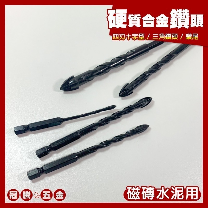 【GTH冠騰五金】硬質合金鑽頭 (磁磚水泥用) 四刃十字型 三角鑽頭 六角柄 鑽尾 鑽頭