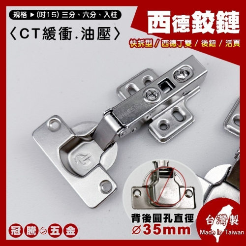 【GTH冠騰五金】緩衝 油壓 西德丁雙 (CT 台灣製 快拆型) 鉸鍊 櫥櫃鉸鏈 西德後鈕 西德活頁 吋15 門鉸鏈 門板修復