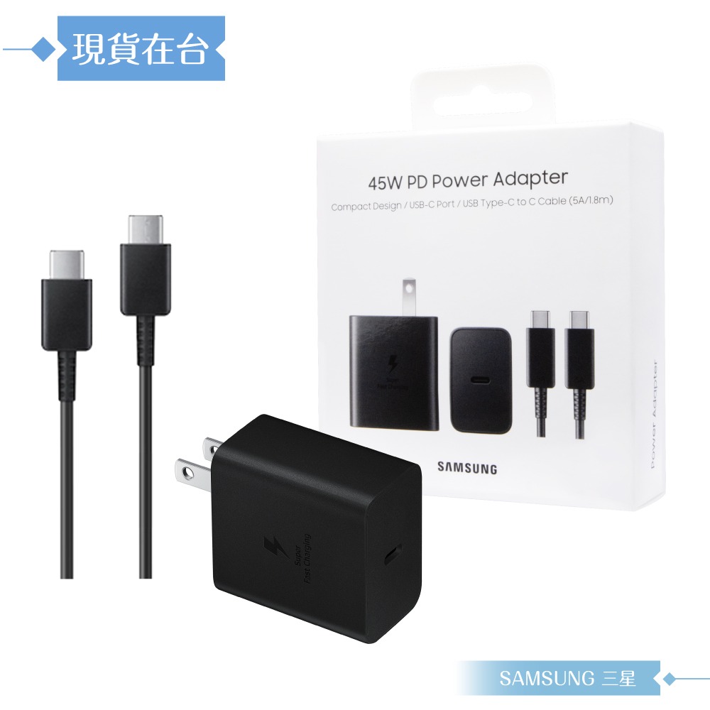 商品名稱:45W原廠盒裝組 ( 內有45W PD極速閃充頭 + 5A雙Type C線1.8m )