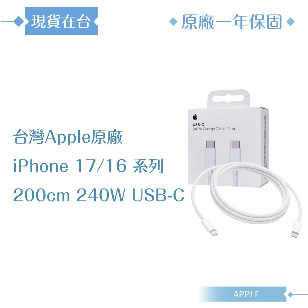 商品名稱:原廠盒裝2M / 240W USB-C 充電連接線【iPhone 17/16 系列適用】