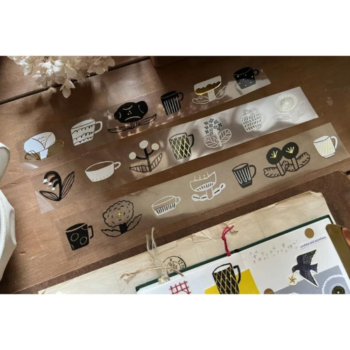 3) 花間午茶 4cm 透明PET,白墨+燙金印刷,自帶離形紙/循環90cm