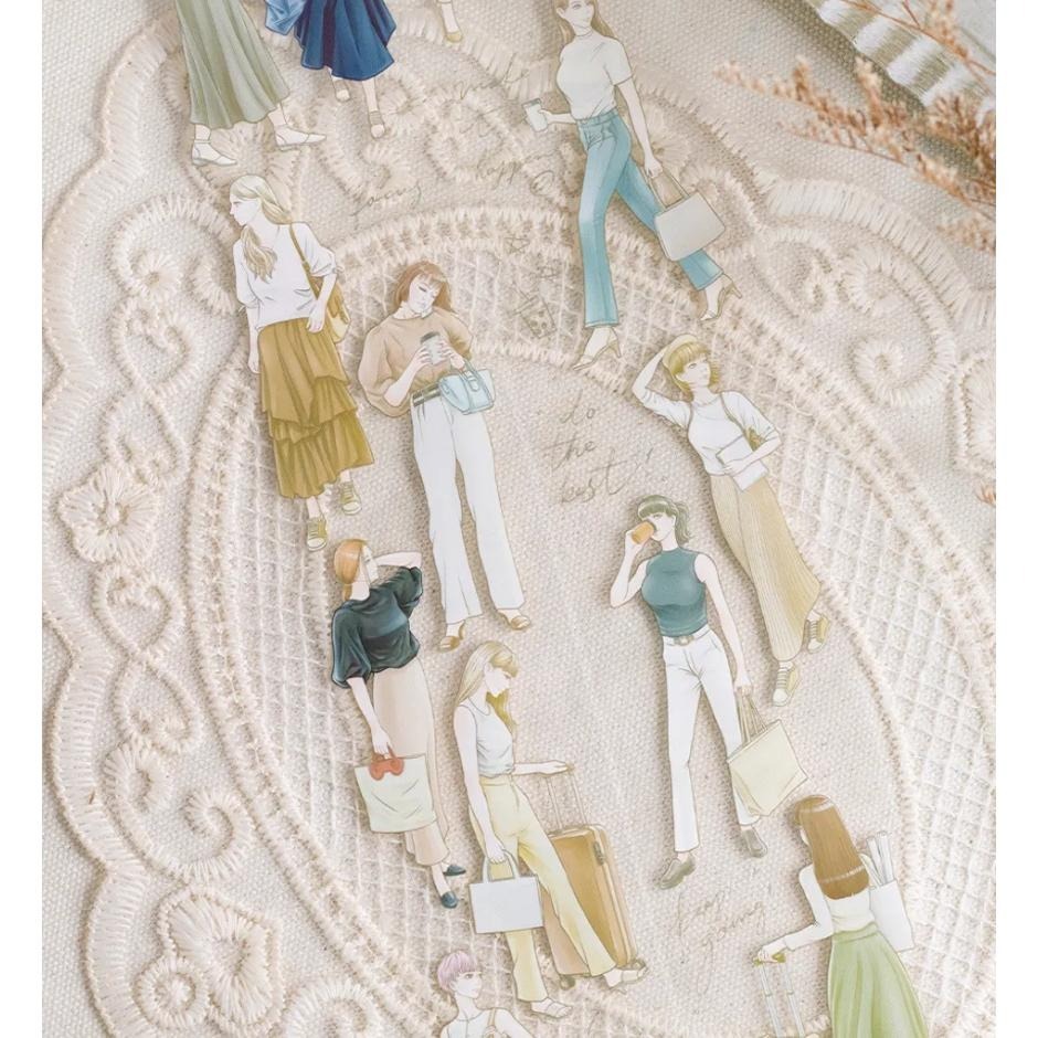 4) 5cm 出差少女 Business Trip 大年創意承印,亮面PET,自帶離型紙,特油印刷,白墨/循環90cm