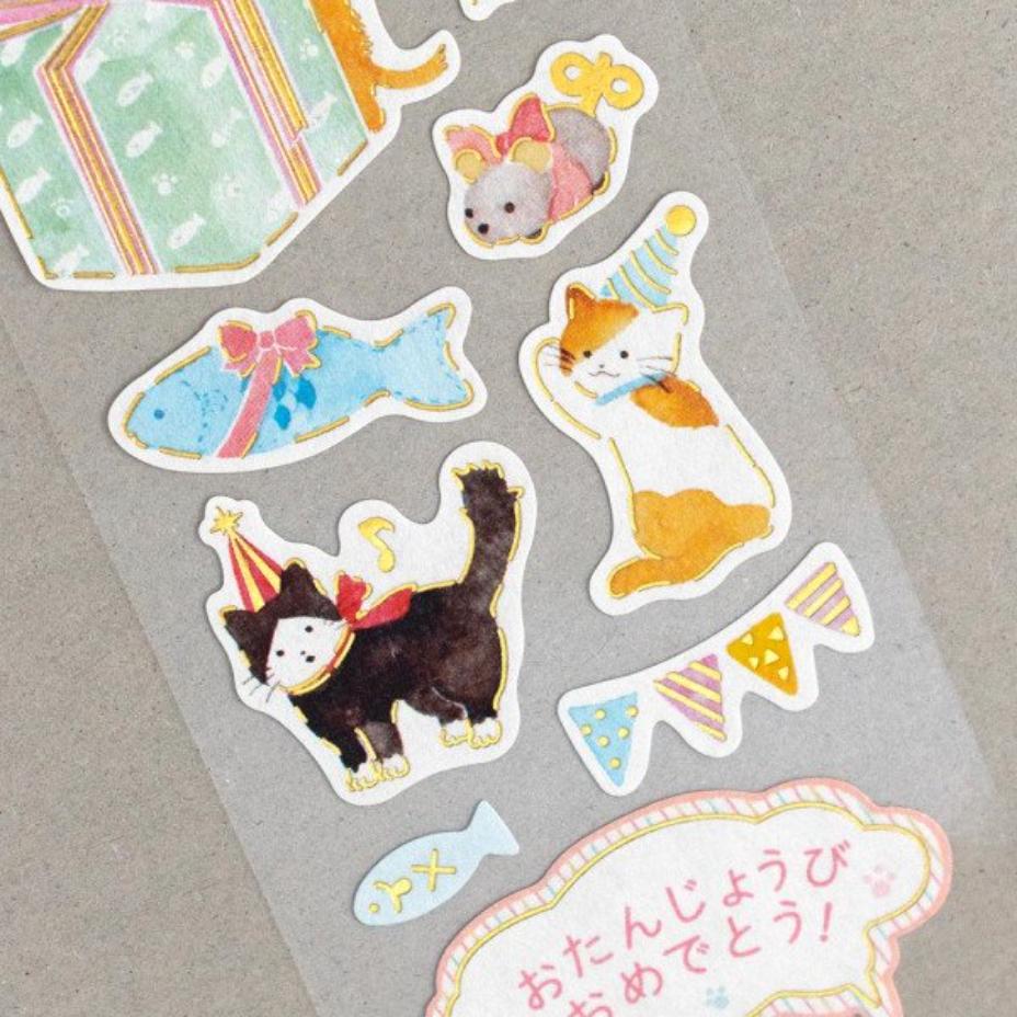 NB社 繪本風貼紙 幼貓 生日祝賀 和紙 金箔加工 日本製【立夏手帳生活】