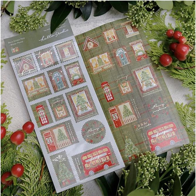 你好工作室 冬日郵便局 割型燙金貼紙兩入組 小狐狸 狐吉【立夏手帳生活】