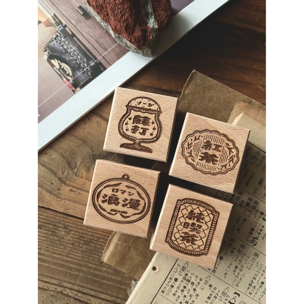 微瘋畫室「蘇打/紅茶/純喫茶/浪漫」昭和古舊標籤印章【立夏手帳生活】