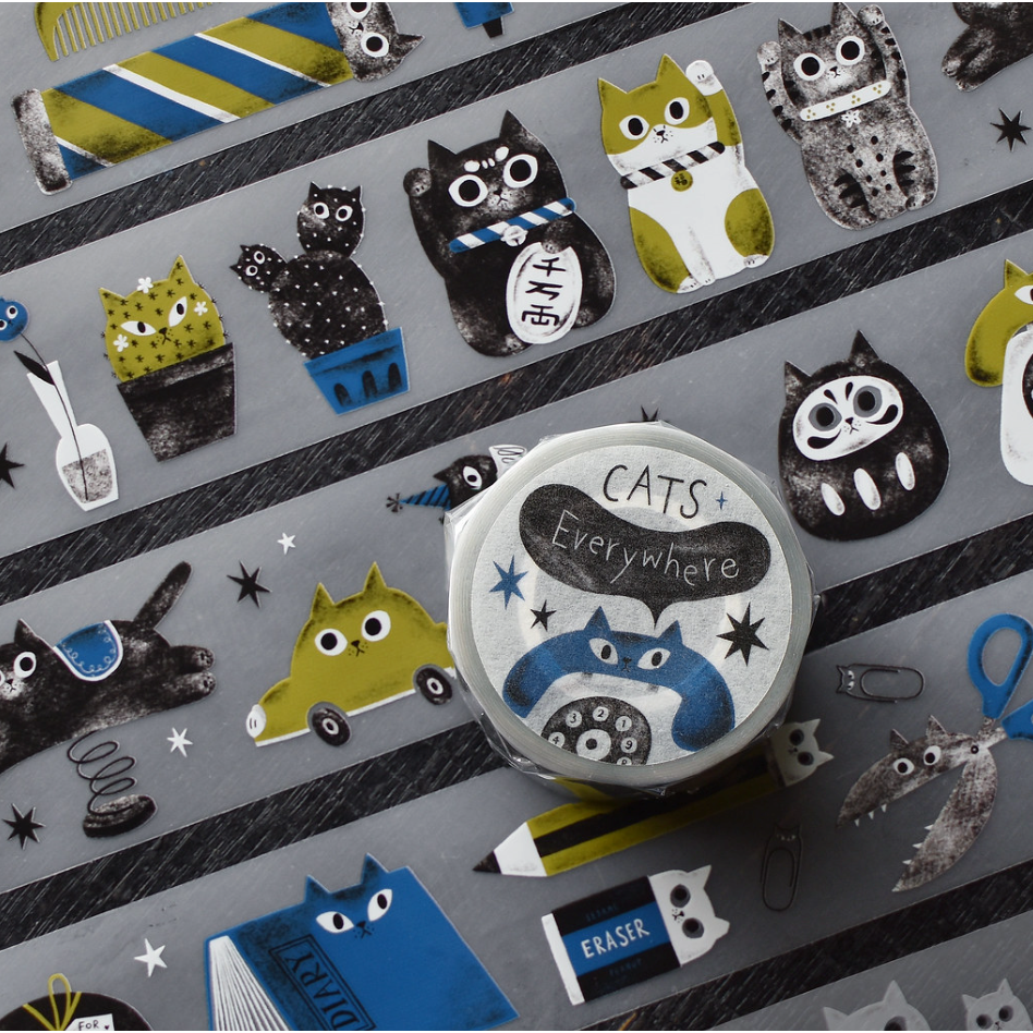 大芝麻小花生 到處都是貓 4cm霧面PET膠帶【立夏手帳生活】