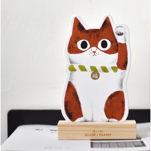 【2款】大芝麻小花生 手工絹印卡片「花生招財貓/屁屁招財貓」【立夏手帳生活】