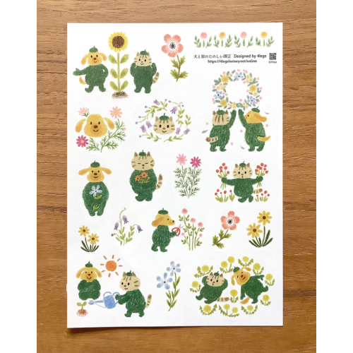 4legs 「狗勾與貓貓的快樂園藝」上質紙貼紙組 4 legs 貓咪 日本製【立夏手帳生活】