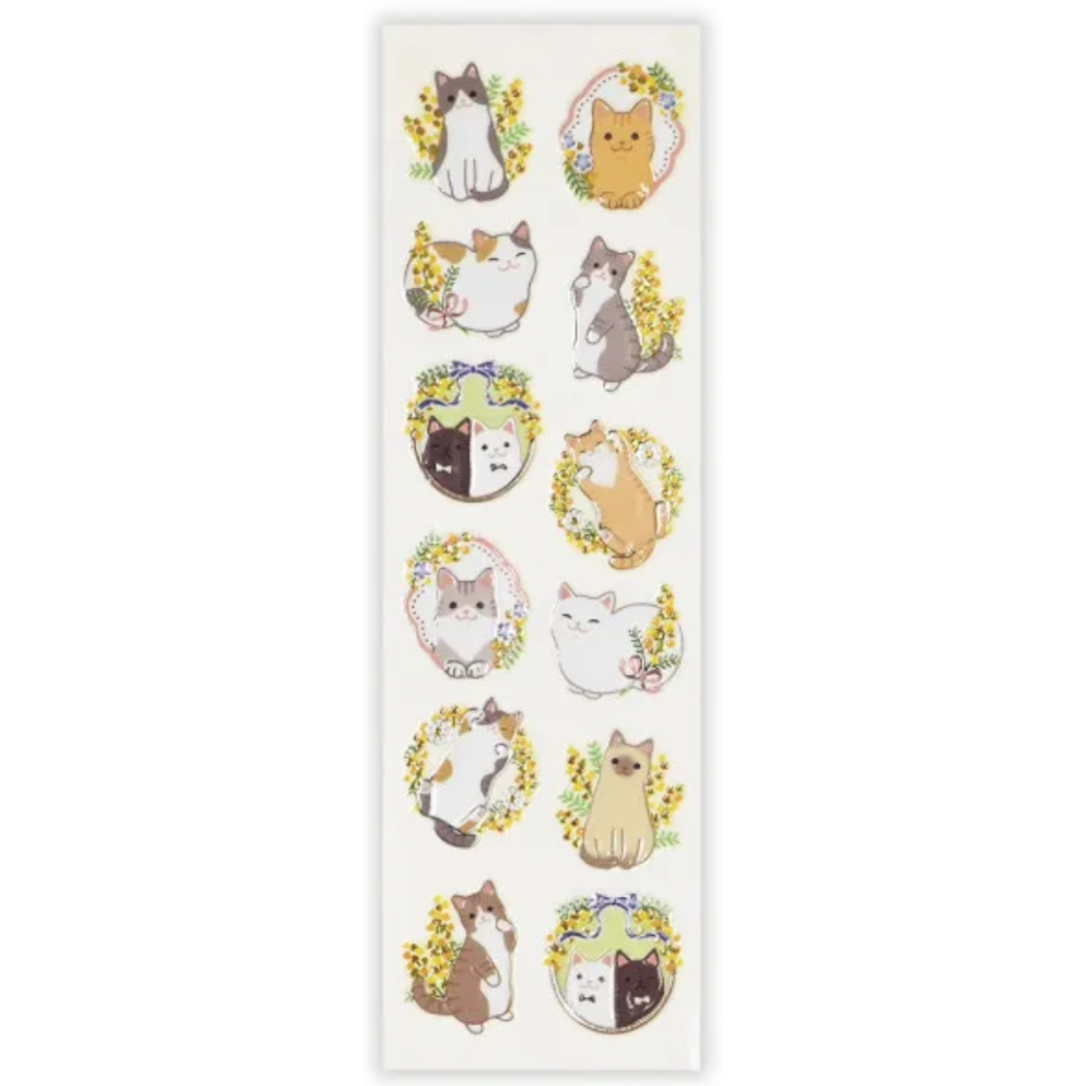 NB社 迷你貼紙系列 貓貓與金盞花款 燙銀+透明浮凸加工 日本製【立夏手帳生活】