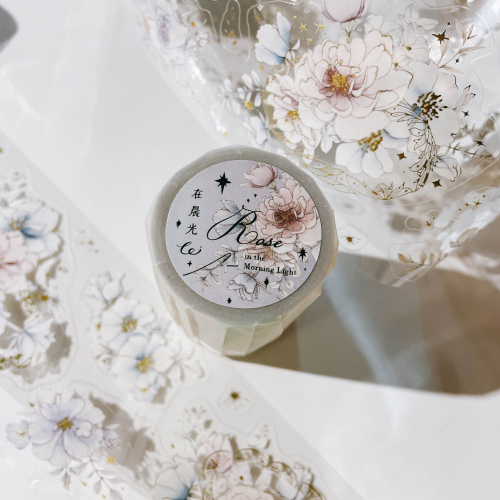 樂意 在晨光的玫瑰Rose in the Morning Light 7cm亮面割型燙金PET膠帶【立夏手帳生活】