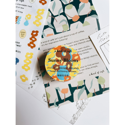 什物a kind of cafe 黃藍花花 標籤貼紙卷【立夏手帳生活】