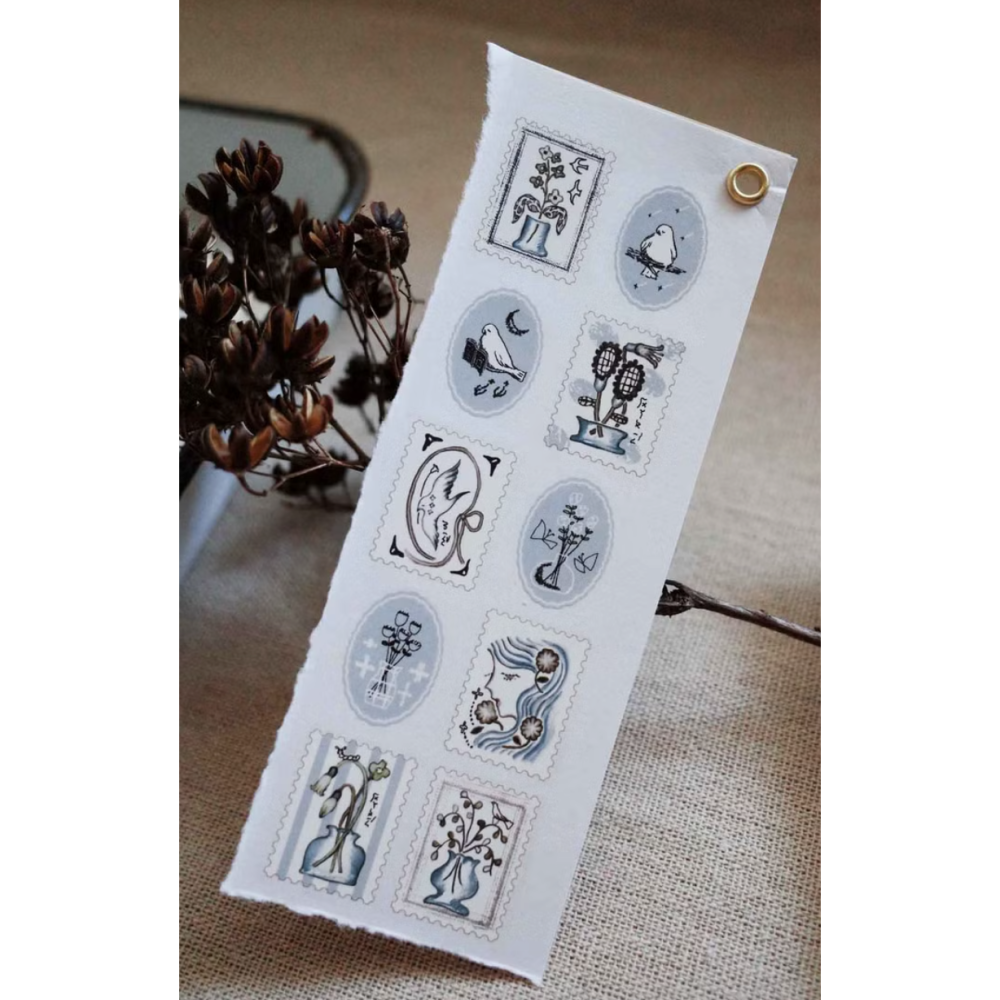 何包蛋 淡藍郵票 轉印貼紙 2張組 misshoegg【立夏手帳生活】
