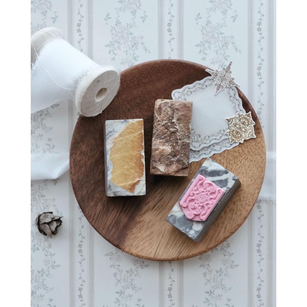 每顆印章取手皆為完全獨一無二的個體、也因為手工打磨在長寬尺寸上會有些微的尺寸差異。