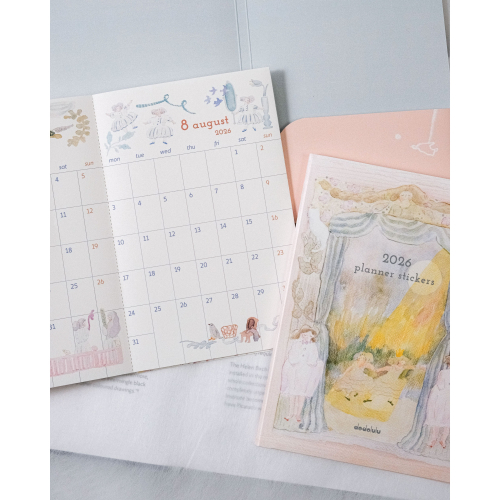 創造你想的月計劃行事曆。打開 dodolulu 的 2026月曆貼紙小封套,你會發現12張月間貼紙、1張年曆貼紙和1組索引貼紙。一撕一貼就能創造屬於你的空間,發揮無限創意。
