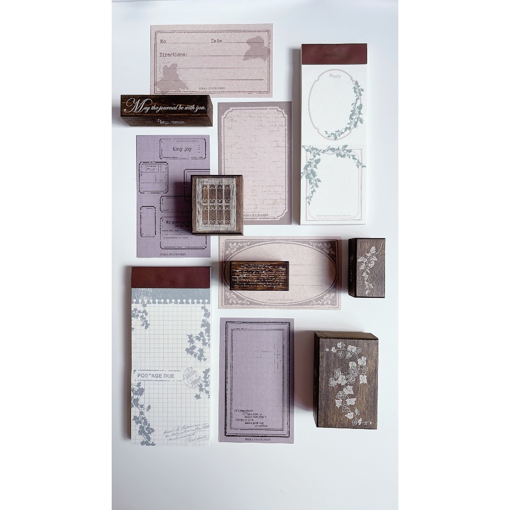 包含:PET膠帶1卷+復古印章5顆+便簽本2款+拼貼卡1包
