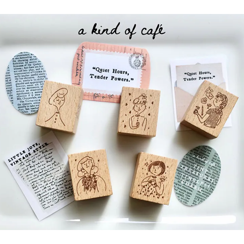 什物a kind of cafe 小女仕們Mademoiselles 扭蛋印章+貼紙套組 天然木印章【立夏手帳生活】