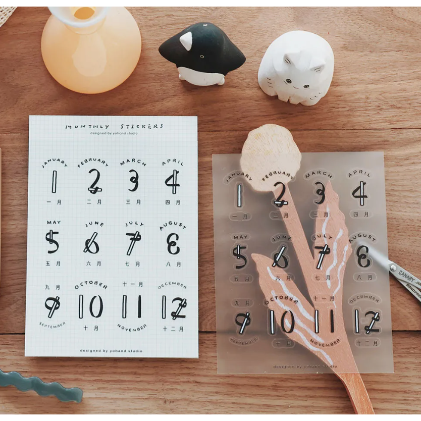 右手超人 黑白字 月份貼紙【立夏手帳生活】
