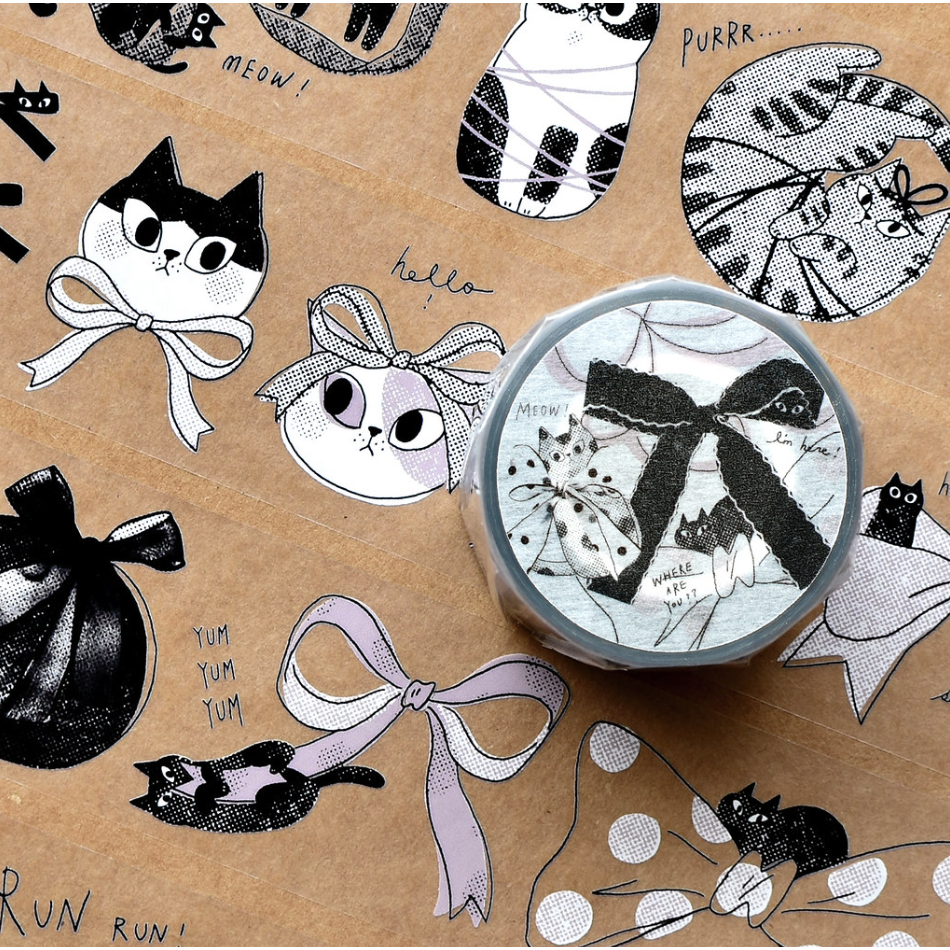 【新改版亮面PET】大芝麻小花生 貓貓蝴蝶結 4.5cm亮面PET膠帶【立夏手帳生活】
