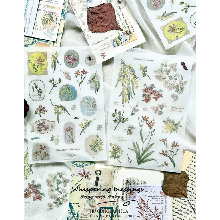 竹工凡花 春季的呢喃祝福 花的姿態/花的細語 轉印貼紙包 共兩款 手帳貼紙【立夏手帳生活】