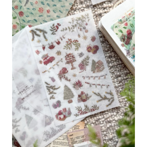 竹工凡花 森林裡的聖誕派對 轉印貼紙包 手帳貼紙 聖誕貼紙【立夏手帳生活】