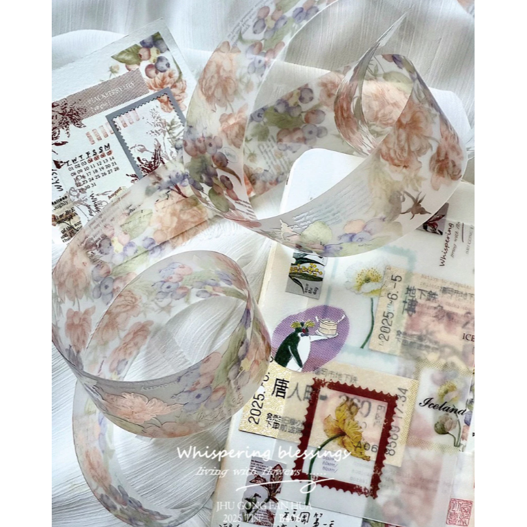 竹工凡花 晨暮花園-藍莓牡丹 霧面PET 膠帶【立夏手帳生活】