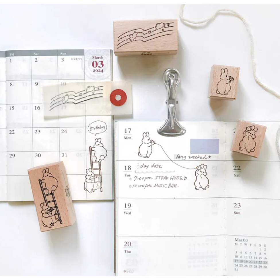 【共2款】Pei Pei Studio 小兔手帳印章「傳聲筒/爬梯」天然櫸木印章【立夏手帳生活】