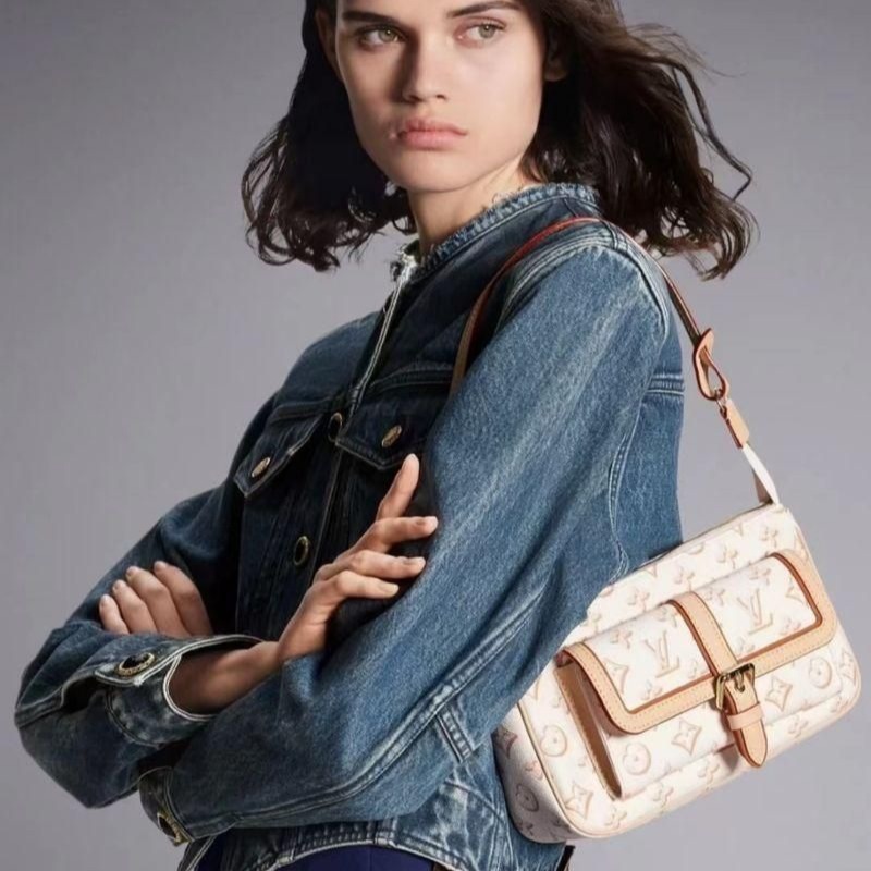 二手99新LV路易威登經典爆款純皮白色限量法棍單肩腋下包