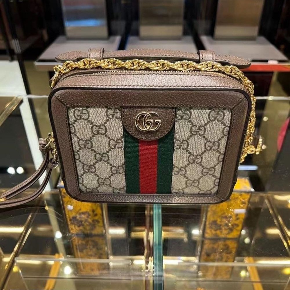 二手99新Gucci古馳女包Ophidia印花mini拼色單肩斜跨包鏈條包