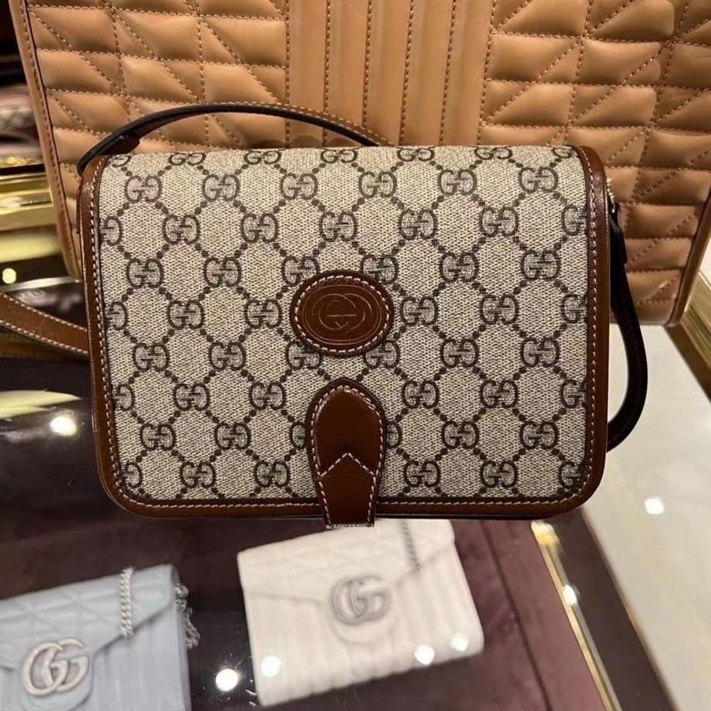 二手99新Gucci古馳女包 經典老花帆布郵差包Retro雙G相機包單肩斜挎包