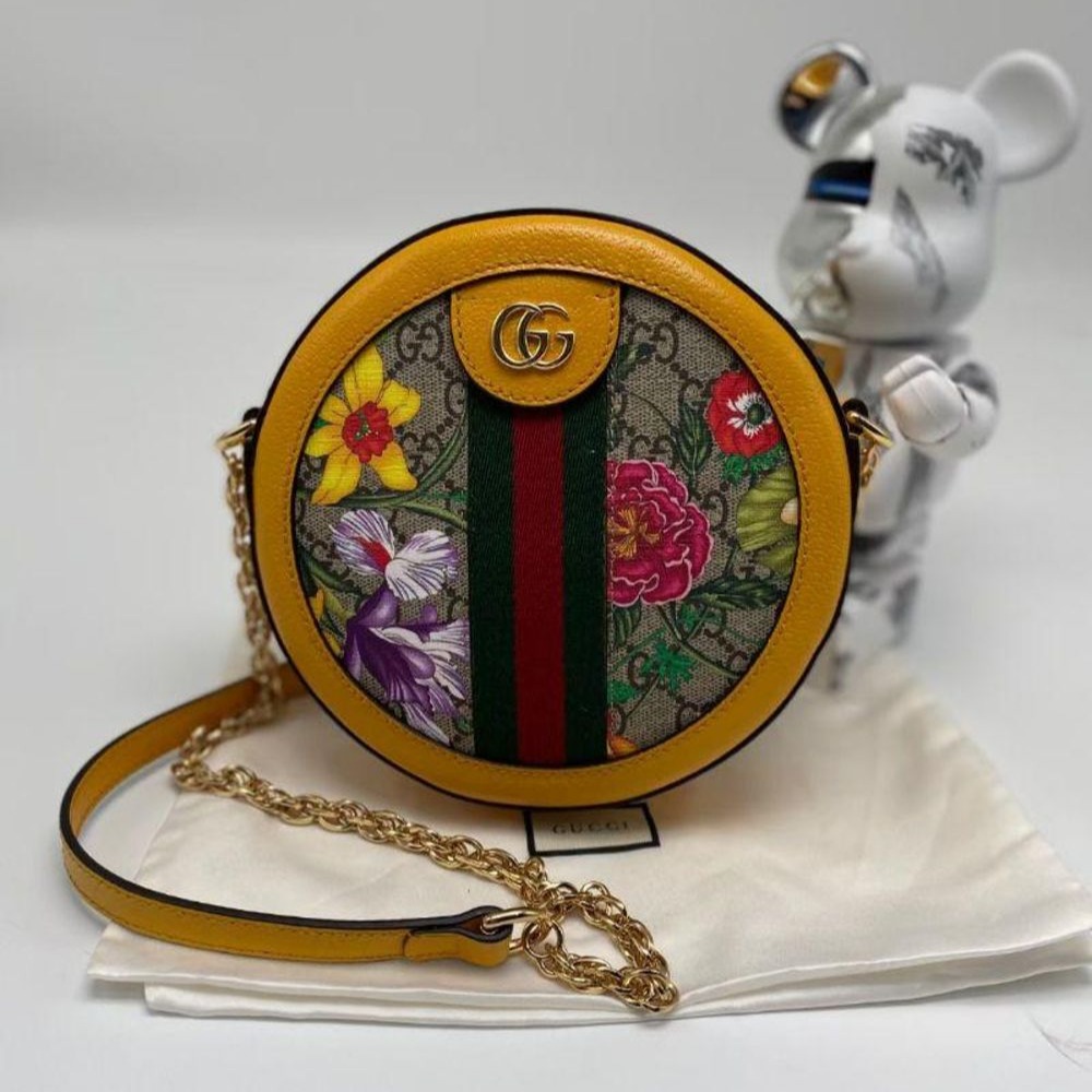 二手99新gucci古琦爆款花卉圓餅鏈條包單肩斜挎包