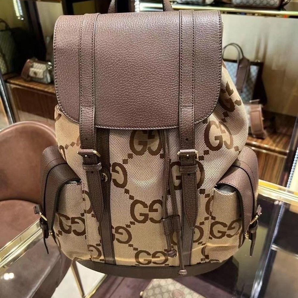 二手99新Gucci 古馳大logo帆布雙肩包書包背包運動包旅行包