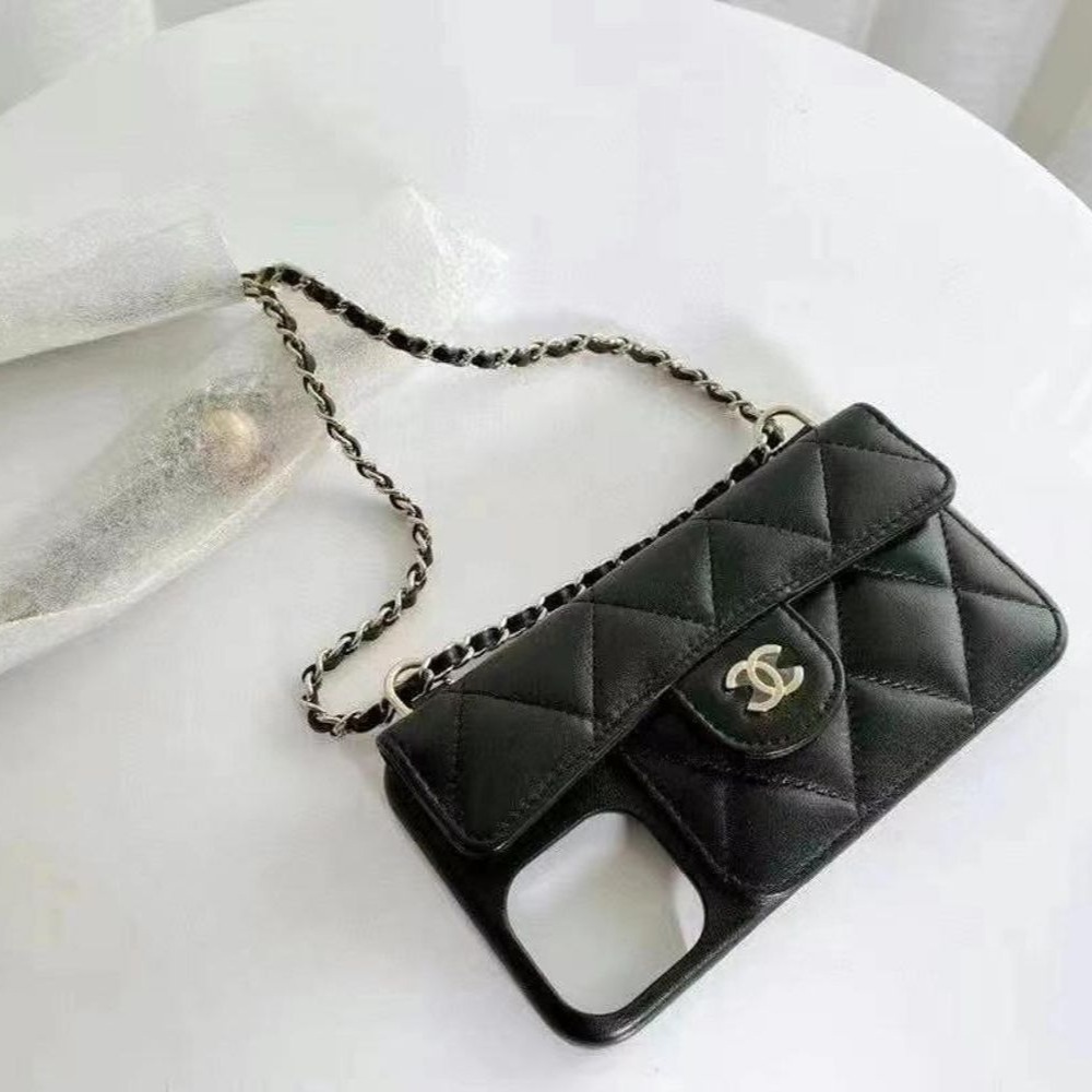二手99Chanel金珠黑金鏈條手機包/手機殼 12Pro 爆款有盒子小