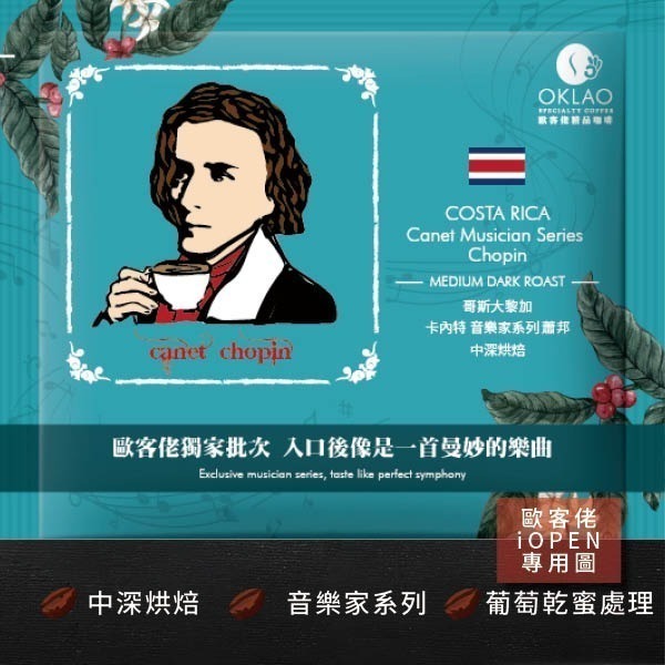 【歐客佬】哥斯大黎加 卡內特音樂家系列 蕭邦 葡萄乾蜜處理 (掛耳包) 中深烘焙 多件優惠