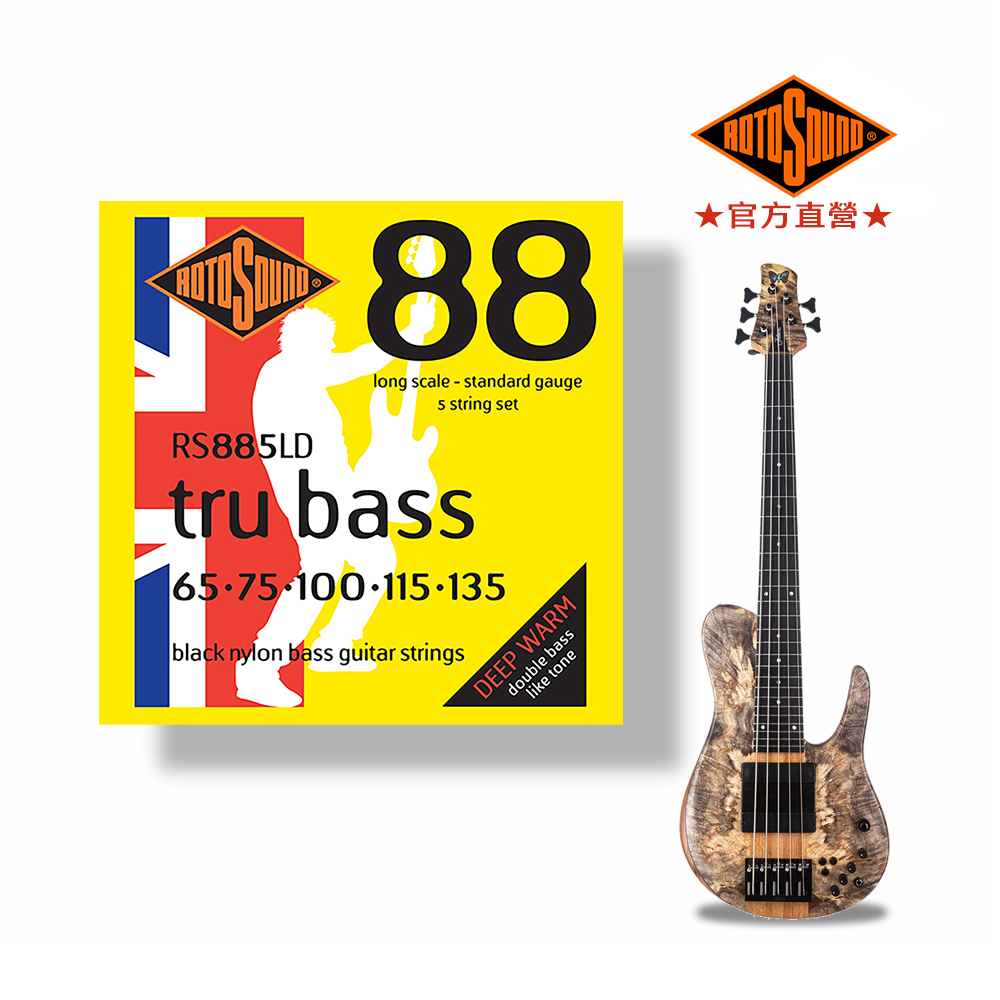英國ROTOSOUND 的 Tru Bass 系列 經過專門專利的設計,使用黑色尼龍絲帶模扁平纏繞不鏽鋼弦芯,圓潤聲音可能是您從電貝司能獲得最接近double bass音色的琴弦。