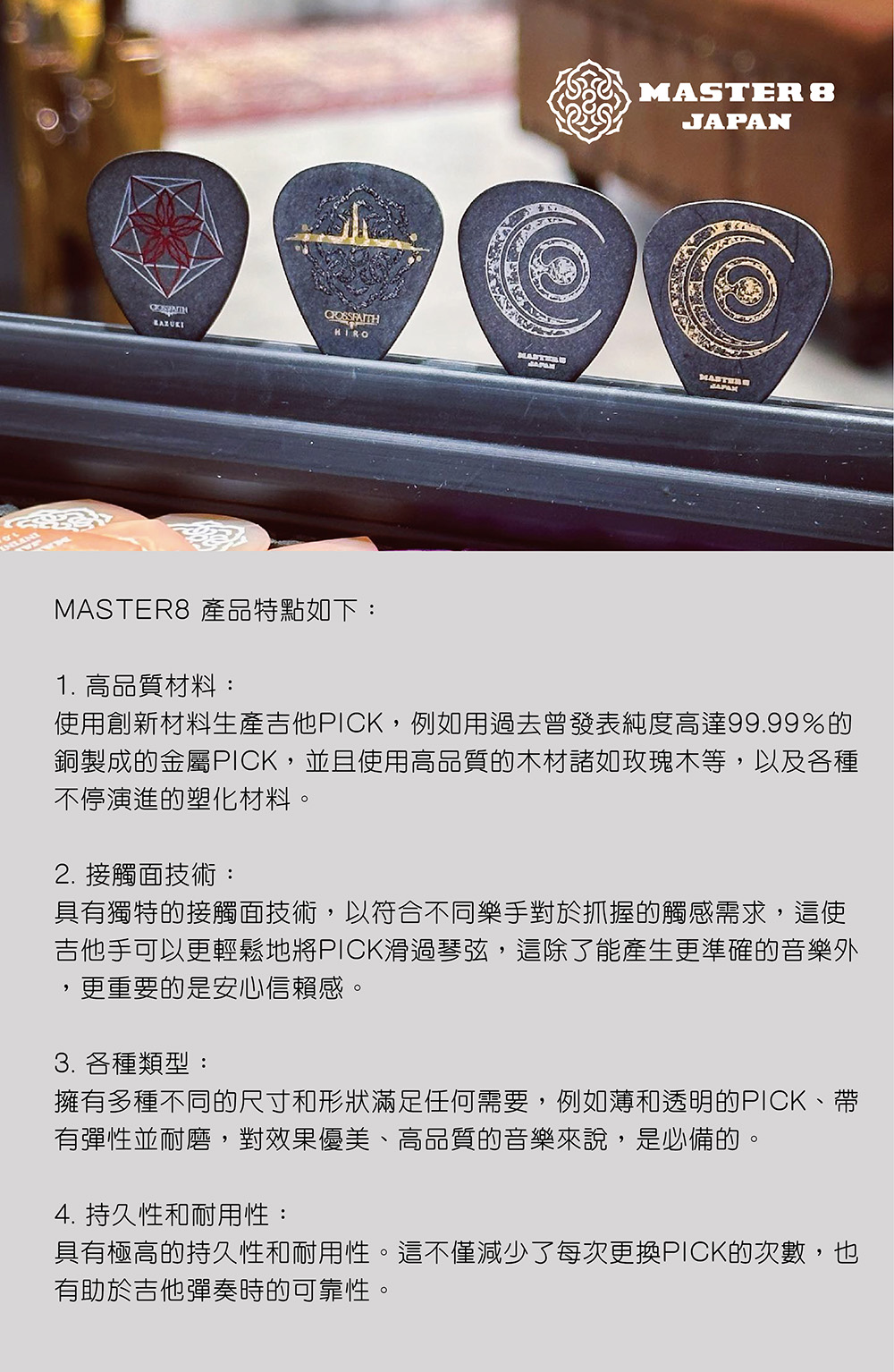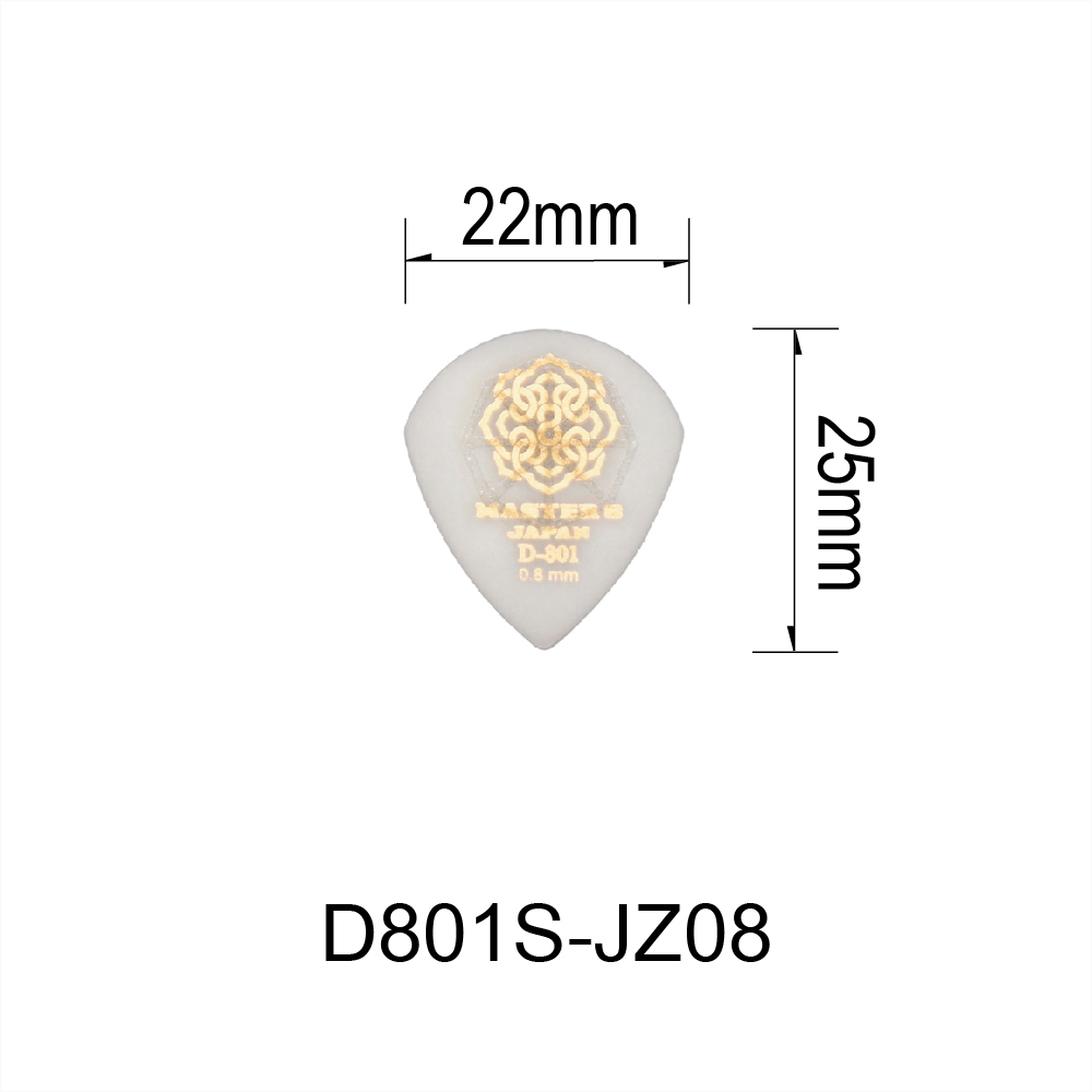 來自日本Master 8 Japan 專業吉他匹克,D801S-JAZZ 磨砂防滑系列6片裝, 尺寸 25mm *25mm ,雙面磨砂防滑印刷不怕汗多手滑!