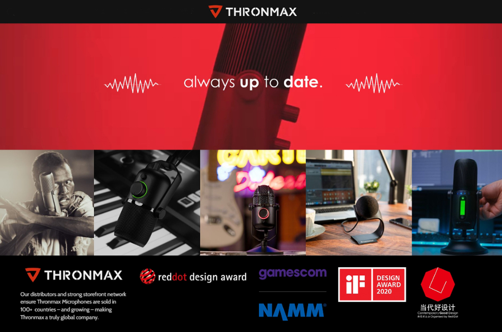 目前Thronmax麥克風在 70 個國家/地區銷售 - 並且還在不斷增長 - 使 Thronmax 成為真正的國際品牌。