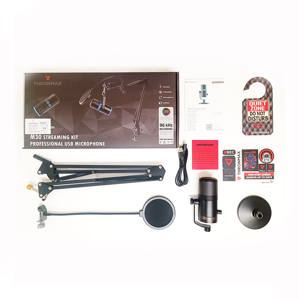 想要進行直播收音工作嗎? 苦於預算與專業錄音技能不足嗎? Thronmax M30 Streaming Kit 直播收音套件組一次為您搞定最高CP直與基礎入門的收音配置.同時提供桌上型源盤架與桌邊架懸臂, 讓你在收音之餘也可以同時架設一個攝影器材,實現影音直播的目的!
