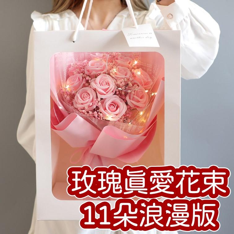 • 11朵特大粉色玫瑰(附禮袋及燈串) 11朵特大粉色玫瑰(附禮袋及燈串)