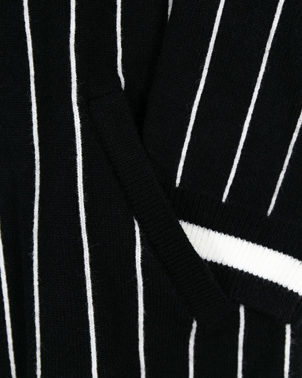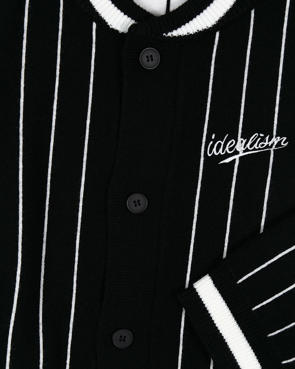 混合美式風格的豐富樣貌,以棒球外套為輪廓設定並採全針織工藝執行,著重於質量呈現,柔膚紗線進行雙面織合,能構成一定的磅數及保暖效果,並擁有溫和不刺癢的穿著體驗,直條紋帶動復古視覺,基礎的休閒氛圍與舒適性是元素歷久不衰的關鍵之一。