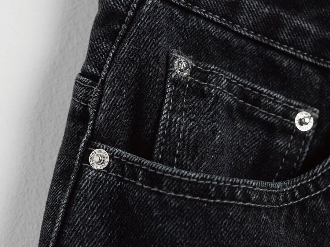 牛仔布料紮實硬挺 水洗紋路低調沉穩