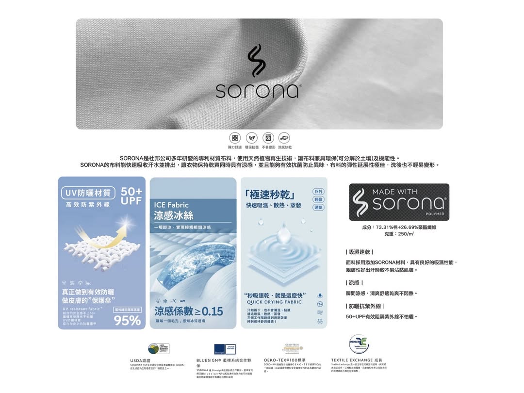 具有抗菌、涼感、速乾、透氣、防曬功能