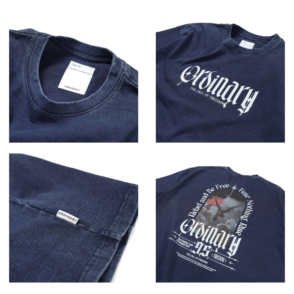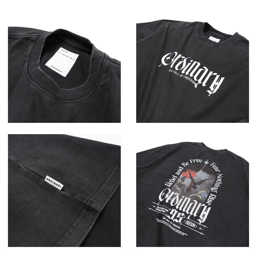 ▪ 正面以哥德體「Ordinary」字樣搭配 The Call of Freedom 標語,直白宣告品牌態度,在低調的視覺下蘊藏堅定與力量感,讓簡單的設計也能成為日常造型的亮點。