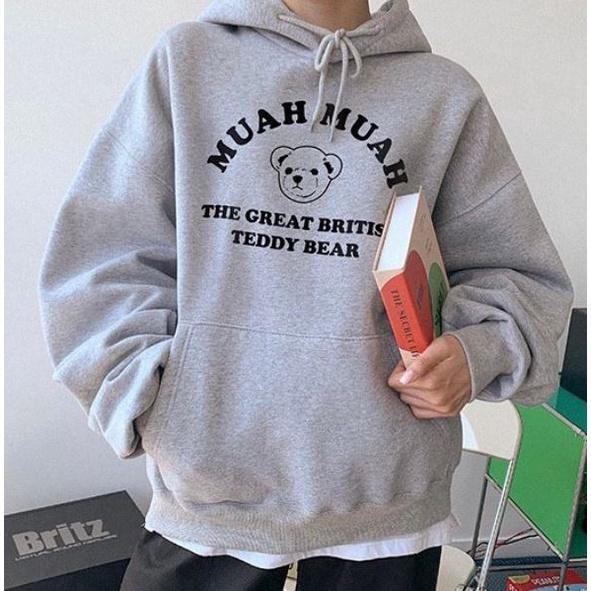 現貨絕版品出清 MUAHMUAH 連帽T恤 帽T 長袖帽T 內刷毛 MUAH MUAH 泰迪熊【PS中壢】