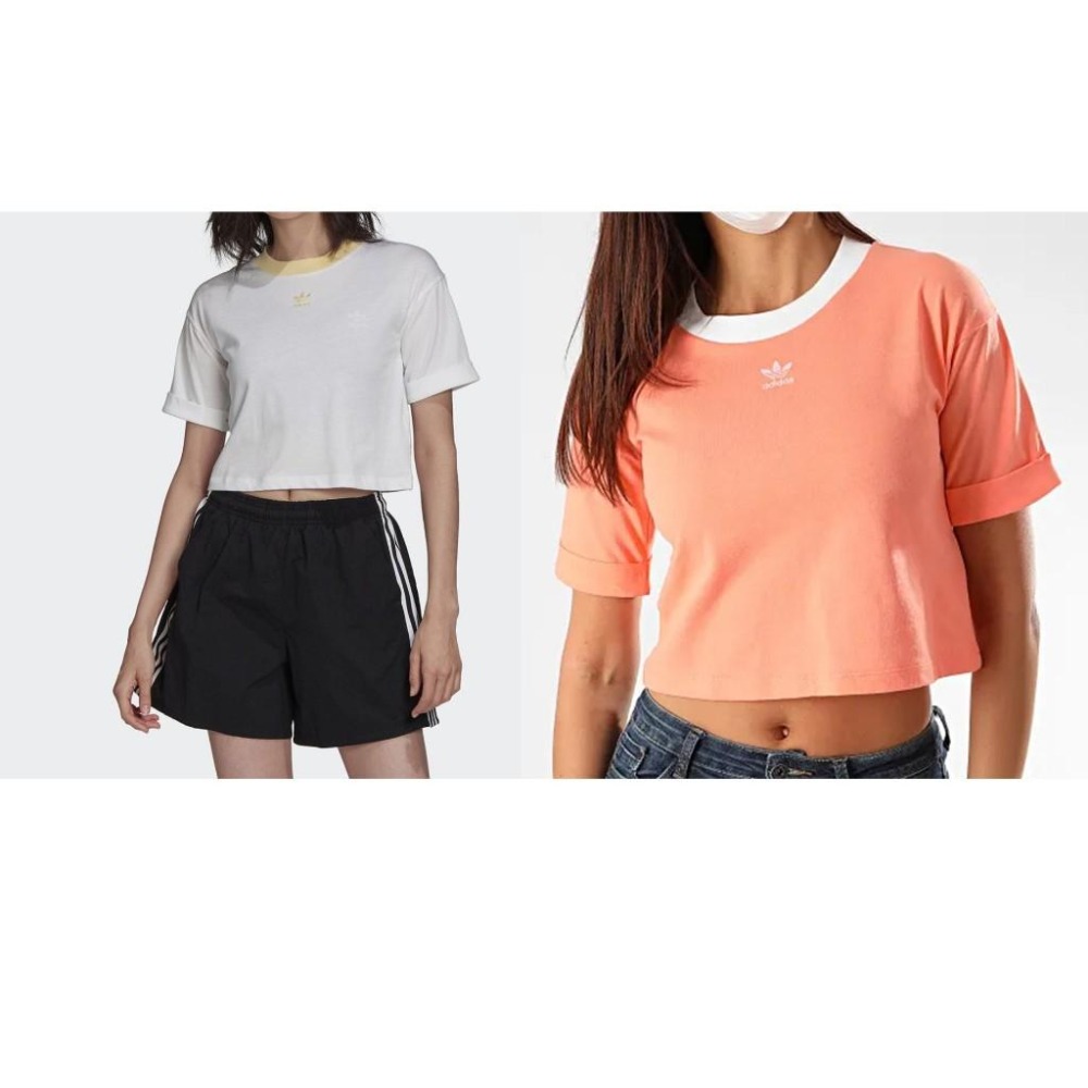 這款上衣採用短版剪裁,搭配撞色領口,採用純棉針織布材質製成,觸感柔軟,風格休閒,可放入洗衣機中清洗。