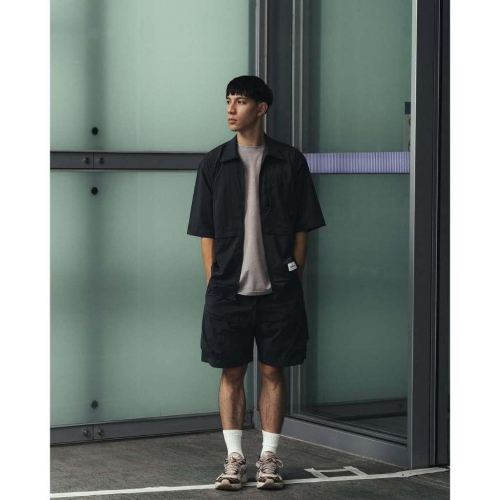 以交疊設計強調機能所帶來的視覺層次,上下延伸,俐落透過裁線與口袋設計勾勒立體輪廓,