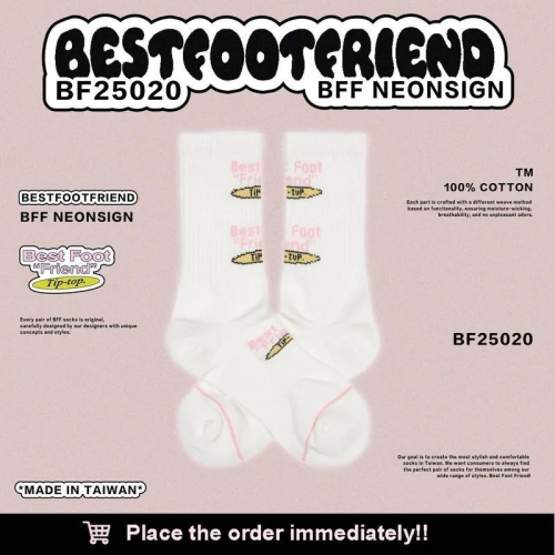 BEST FOOT FRIEND / BFF襪 BFF NEONSIGN 霓虹燈 刺繡 長襪【PS中壢】