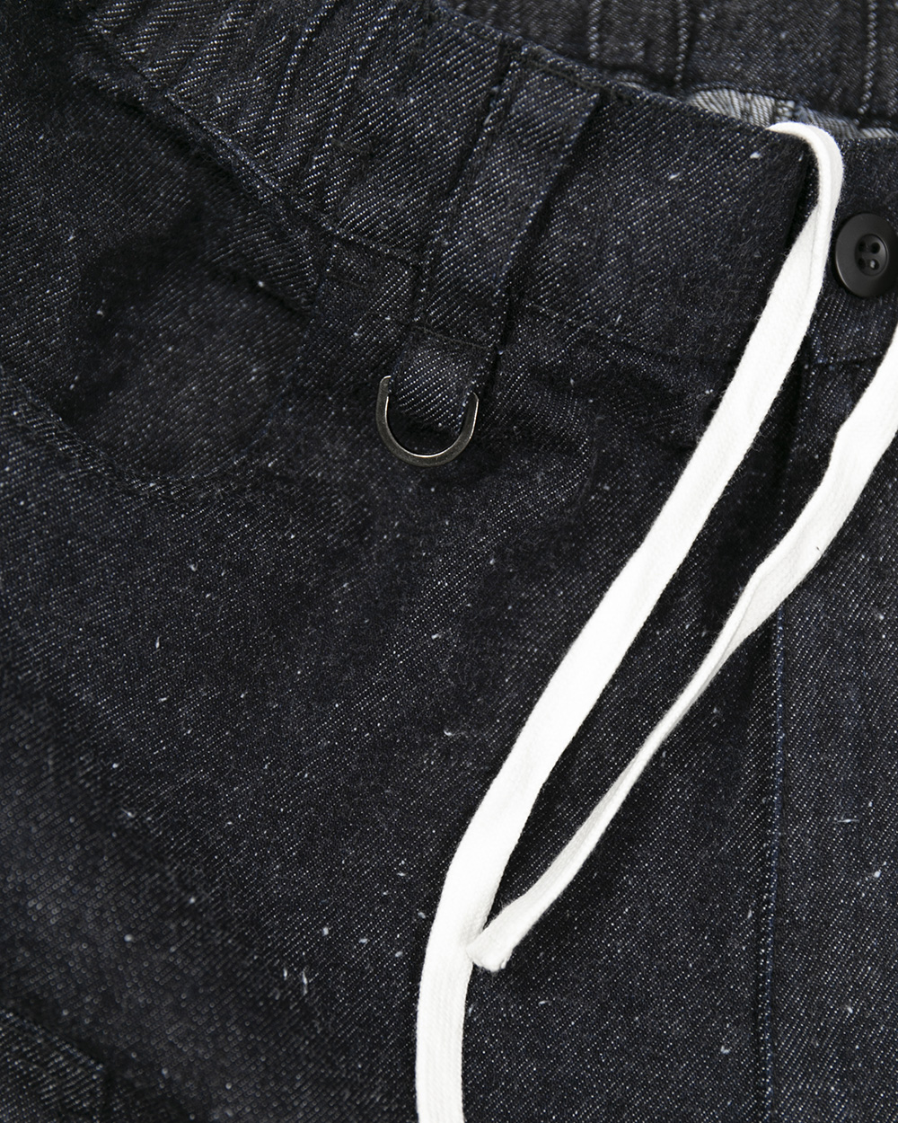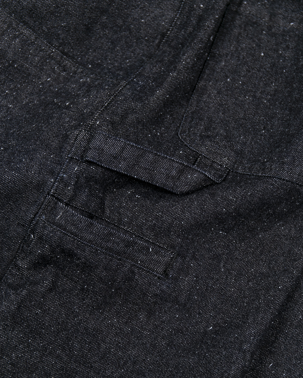 延續Double Knee外型,藉由單寧呈現更加休閒的穿著樣貌。本次探討著不同面向的仿舊元素,藉由水洗及輕度的邊緣破壞勾勒使用痕跡,另外則採用原色雪花單寧製作,特殊混紡及復古的布面效果,讓原色單寧嵌上一層柔和的休閒氛圍,也建構出不同的古著風格。