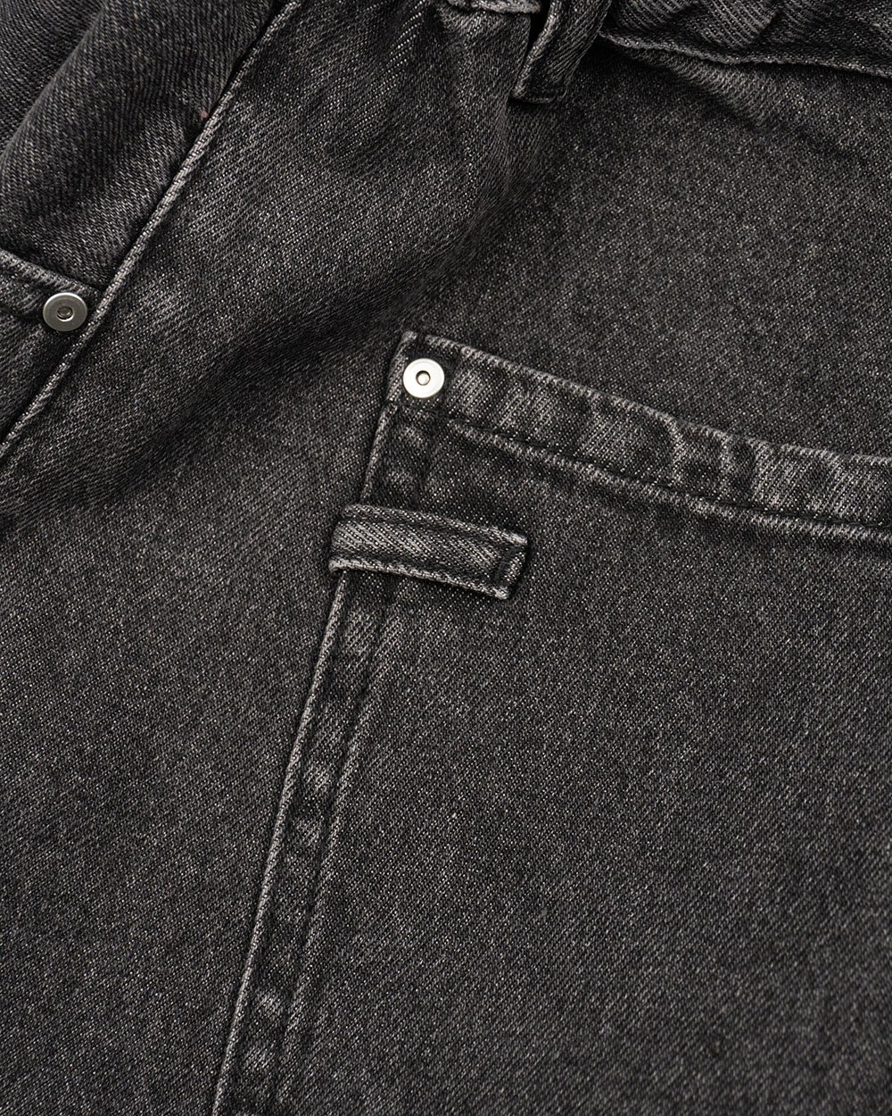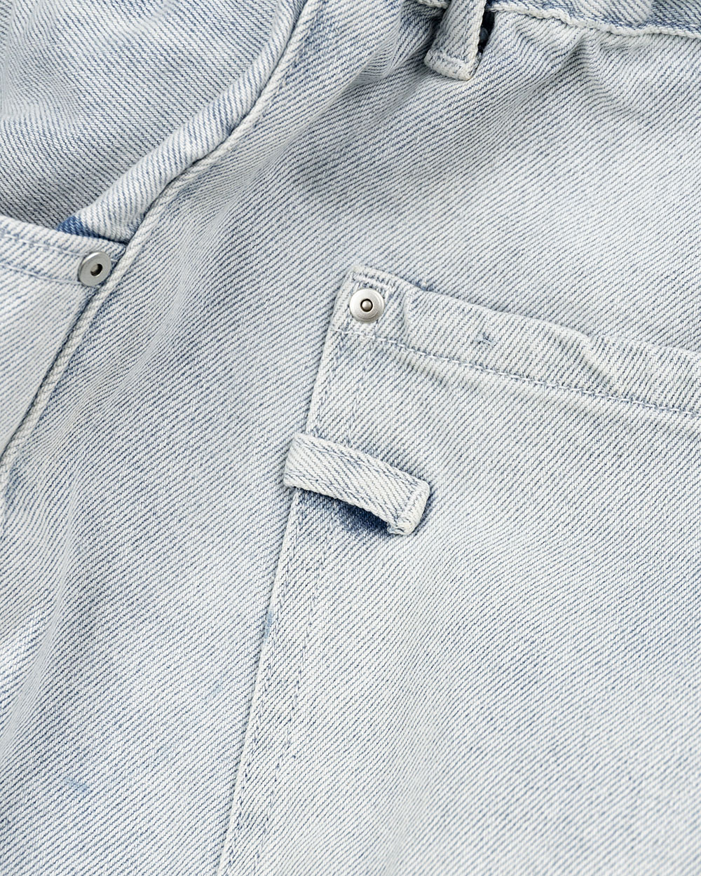 展現極簡丹寧風格,褪色效果散發隨性休閒視覺,膝下褲型建立起個性趨勢的日常搭配,自在活動的適度廓形,後側掛耳增添吊掛需求,低調點綴機能細節。