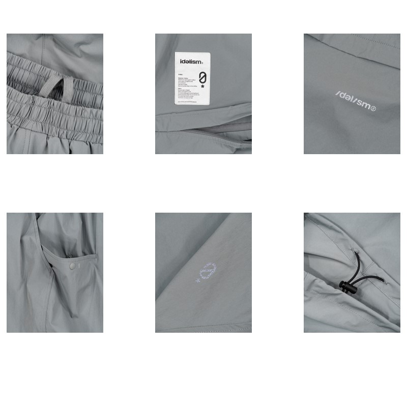 材質採用Teflon彈性機能布製作,將弧線廓形作為基底,拆解為三段式設計,最大化因應氣候變異,全長階段可將腳口收合達到阻風效果,後分別為六分與膝上,並汲取攀岩褲的功能元素,發揮出優異的收納表現,LOGO採用反光印刷,點綴視覺細節。
